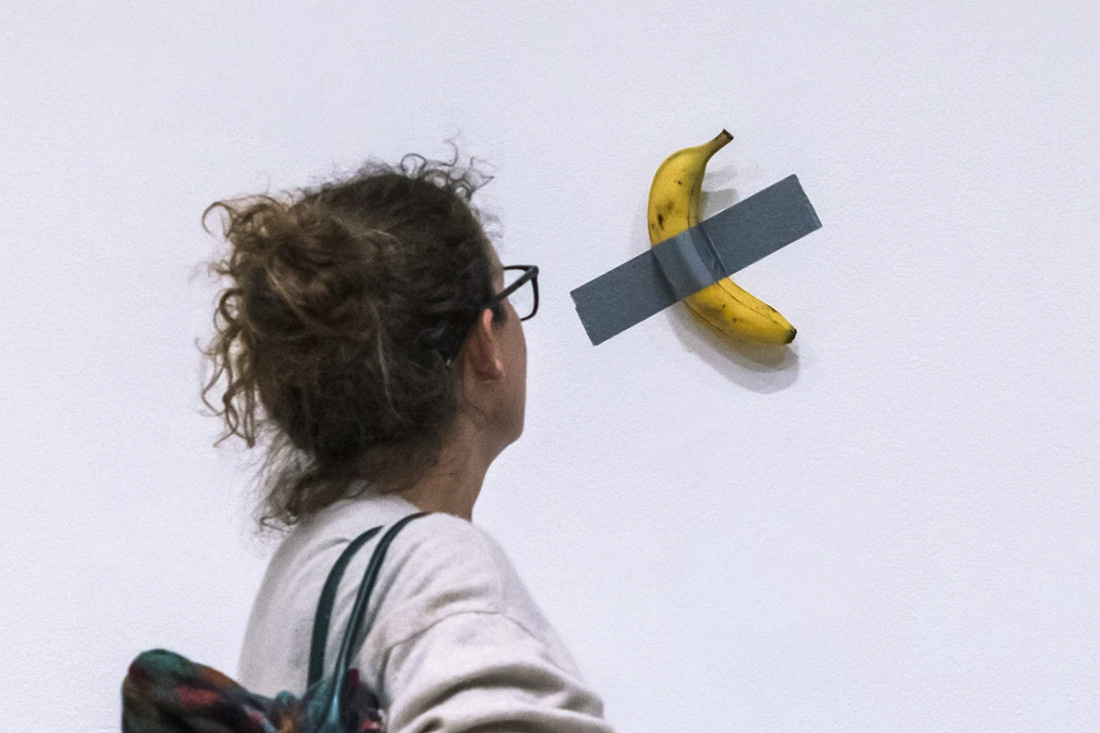 Банан, приклеенный скотчем к стене, могут продать более чем за 1 миллион долларов на предстоящем аукционе Sotheby's в Нью-Йорке. Работу под названием «Комик» итальянского художника Маурицио Каттелана будут продавать 20 ноября.