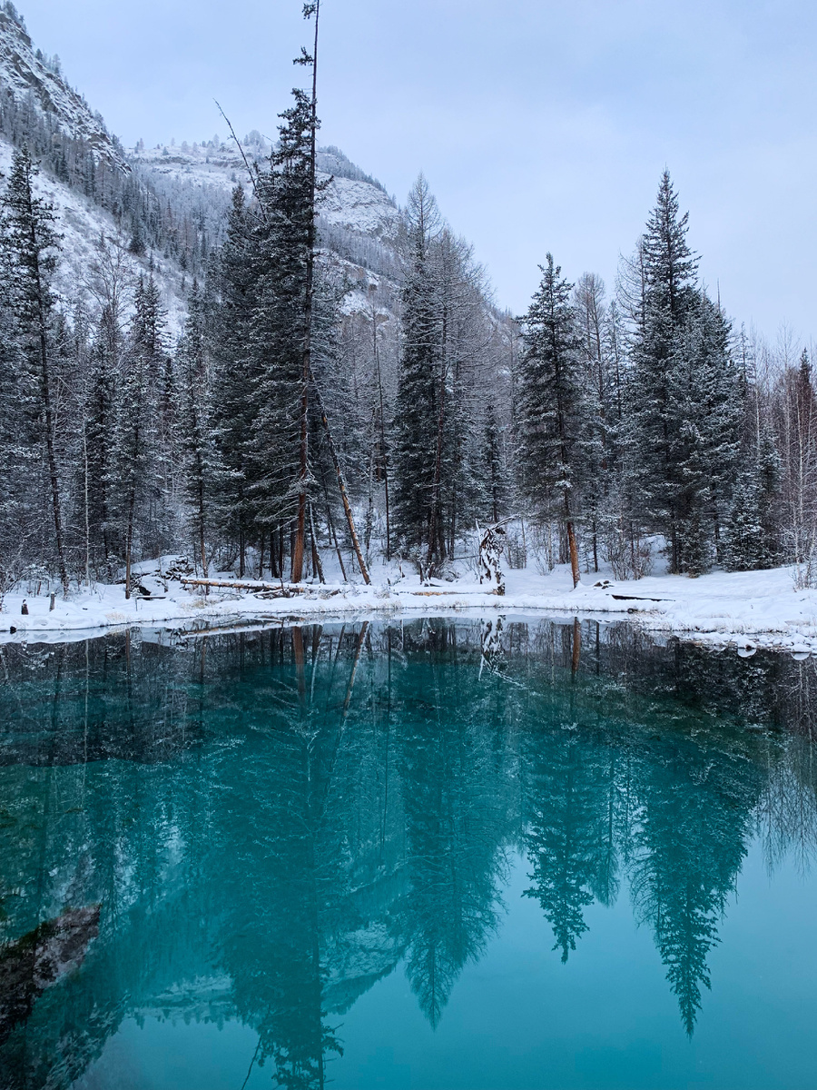 Гейзерное озеро, также известное как Гейзеровое, Голубое и Серебряное озеро, является уникальным природным объектом. На дне озера находятся источники, поэтому вода не замерзает зимой. 📍Республика Алтай, Улаганский район, с. Акташ 📍место на карте Расстояния и время в пути: от Горно-Алтайска - 360 км; 5-6,5 ч; от Акташа - 6 км; 8 мин. Озеро подпитывают подземные родники, один большой и три поменьше. Поверхность дна состоит из смеси голубой глины и песка, которая при увеличении притока воды из родников поднимается и оседает на дне, образуя причудливые узоры, похожие на те, что оставляют гейзеры на поверхности земли. Глубина озера до видимого дна около 2 метров, но вся его глубина не известна. По словам владельца базы «Маленький рай», бревно, торчащее из озера - это столб, который уронили, когда велось строительство ЛЭП. Точный возраст и происхождение озера тоже не известны. Озеро является природным памятником. Купаться здесь и бросать монеты запрещено. Озеро стало популярным среди ту