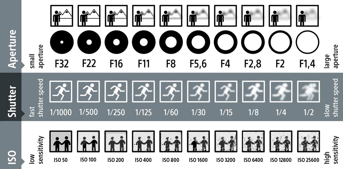 Фотография — это искусство управления светом, и ключ к созданию хороших снимков заключается в умении правильно настраивать фотоаппарат. Три основных параметра, которые отвечают за то, как свет взаимодействует с камерой, — это выдержка, диафрагма и светочувствительность (ISO). Вместе они формируют так называемый "треугольник экспозиции", определяющий яркость и качество фотографии. Рассмотрим каждый параметр подробнее. Выдержка — это время, в течение которого свет проходит через объектив и попадает на сенсор (или пленку). Она измеряется в секундах или их долях, например: 1/1000, 1/250, 1/60 или 2 секунды. Диафрагма — это отверстие в объективе, через которое проходит свет. Ее размер обозначается как f/число (например, f/1.8, f/5.6, f/16). ISO определяет чувствительность сенсора к свету. Низкие значения (ISO 100–400) делают сенсор менее чувствительным, а высокие (ISO 800–3200 и выше) — более. Выдержка, диафрагма и ISO взаимосвязаны. Например: Баланс между этими параметрами зависит от усл
