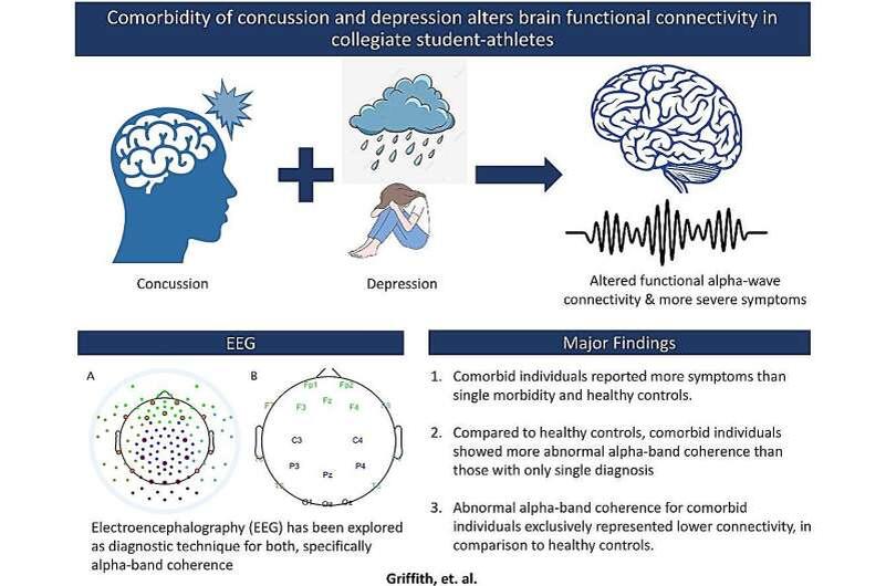 Owen Griffith et al, Comorbidity of concussion and depression alters brain functional connectivity in collegiate student-athletes, Brain Research (2024). DOI: 10.1016/j.brainres.2024.149200