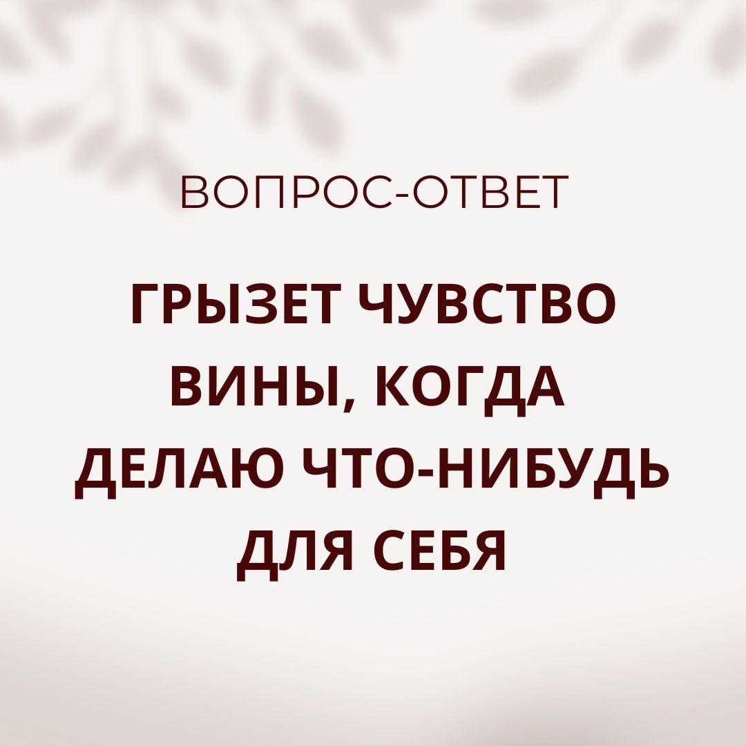 ГРЫЗЕТ ЧУВСТВО ВИНЫ, КОГДА ДЕЛАЮ ЧТО-НИБУДЬ ДЛЯ СЕБЯ