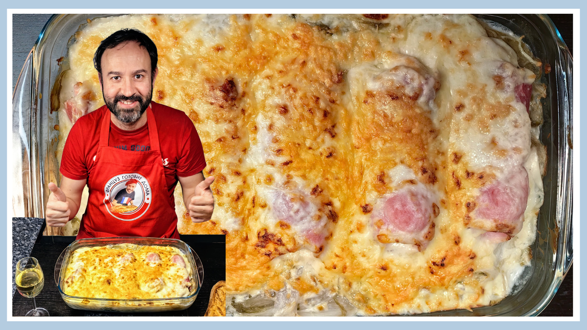 После говяжьего языка, блюда, которое вспоминают больше всего мои братья и сестра, хочу поделиться тем, которое я любил больше всего. Цикорий с ветчиной под соусом бешамель. Достаточно простое блюдо, которое всегда приносит мне удовольствие. Поскольку цикорий довольно горький, советую, как в моем рецепте, быть щедрым с бешамелем и сыром грюйер. Обычно ломтик ветчины заворачивают вокруг целого цикория. Так его горечь становится более ощутимой. Но если смешать цикорий с бешамелем и грюйером, горечь смягчается, и блюдо превращается в настоящий кулинарный шедевр. 😊 Для соуса бешамель: Подготовка цикория: 1. Очистите цикорий, срезав ножки, и удалив повреждённые листья. 2. Хорошо промойте в воде. 3. Сложите цикорий в большую кастрюлю, залейте холодной водой, чтобы она только покрывала овощи. Варите цикорий 40 минут. Проверьте готовность, проколов ножку — она должна быть мягкой.