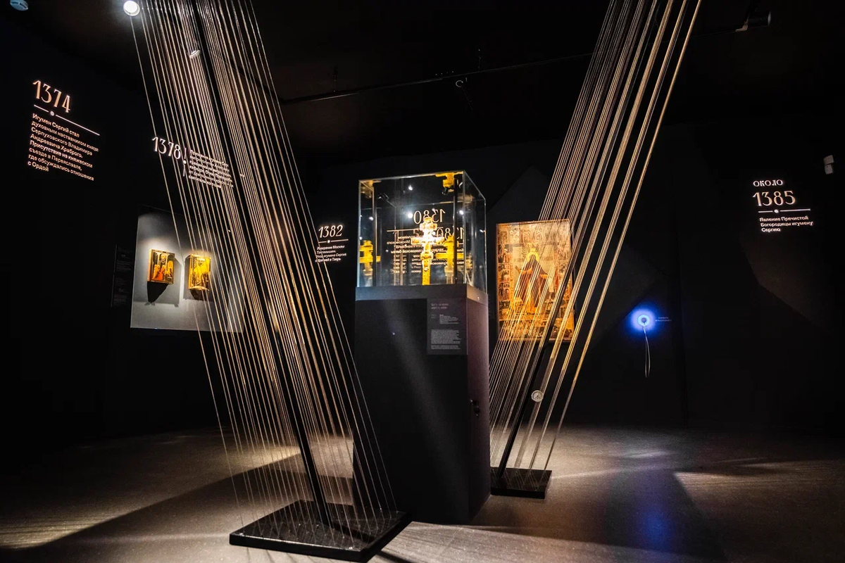 Концепция выставки прорабатывалась нами очень детально: декорации, цветовые и световые решения. Для нас было очень важно создать нужные акценты на редкой иконописи и художественных произведениях и словно переместившись во времени, соприкоснуться с историей через экспонаты. Как результат - выставка с первых секунд обволакивает сакральным духом 17 века. А связь времен здесь показана через единение народа, в основе которого тот самый завет преподобного Сергия Радонежского: «Любовью и единением спасемся!»