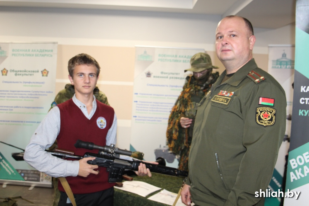 В районном Центре культуры прошел единый день профориентационной работы, организованный военным комиссариатом Гродненской области совместно с управлением образования райисполкома и военкоматом Сморгонского района. На встречу были приглашены учащиеся 9 – 11 классов учреждений образования Сморгонщины. В фойе РЦК была организована выставка, которая вызвала живой интерес у ребят. У них была возможность подержать в руках оружие, боеприпасы, примерить на себя различные виды военной формы. С приветственным словом к собравшимся в зале обратился военный комиссар района Роман Курлов. Он отметил, что в военных комиссариатах Беларуси большое внимание уделяется военно-патриотическому воспитанию молодежи, а также информационной поддержке учащихся в процессе их самоопределения и выбора обучения в военных учебных заведениях. «Наши предки дали нам возможность жить сегодня в процветающей, стабильной стране. Именно от вас зависит будущее нашей Родины. Вы – наша опора и защита государства», - обратился к