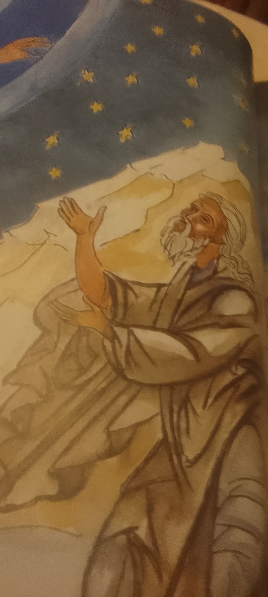 Господь сказал Авраму: " Я твой щит, награда твоя будет велика,,. "Владыка Господи, что Ты дашь мне? Я стар, и у меня нет детей,,, - с печалью отвечал Аврам. Была ночь , и на небе сияли звёзды. "Посмотри на небо и сосчитай звёзды, если сможешь, - сказал Господь Авраму. - Столько будет у тебя потомков,,. Аврам поверил Богу, и Он принял это как праведность.