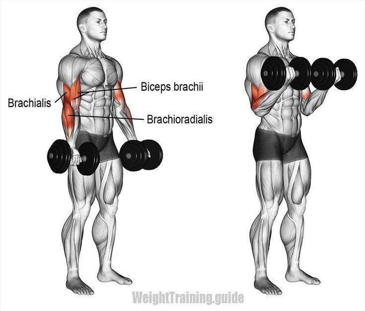 25-30 повторений , 3-4 подхода, отдых между подходами 35-45 секунд, отдых между сериями 8-10 минут, если вы решаете повторить одну и туже серию, амплитуда не полная. Амплитуду выдерживать не полную, что бы не было расслабления мышц. Напряжение должно присутствовать постояно для хорошего эффекта тренировки. После всего тренировочного процесса желательно делать растяжку мышц. Распишу вам вариант одной из своих тренировок: Начинаем нашу тренировку с бицепса (подъём гантелей на бицепс 25-30 повторений, 3-4 подхода, отдых между подходами 35-45 секунд) с весом 4-10 кг в зависимости от вашего физического развития. Подъём гантелей вверх. Данное упражнение (25-30 повторений, 3-4 подхода, отдых между подходами 35-45 секунд) выполняется на дельтовидную мышцу. Следующим этапом переходим к трицепсу. Предложу два варианта, один для тех кто начал недавно и для продвинутых: – для начинающих упражнение будет французский жим с гантелями стоя ( 25-30 повторений, 3-4 подхода, отдых между п