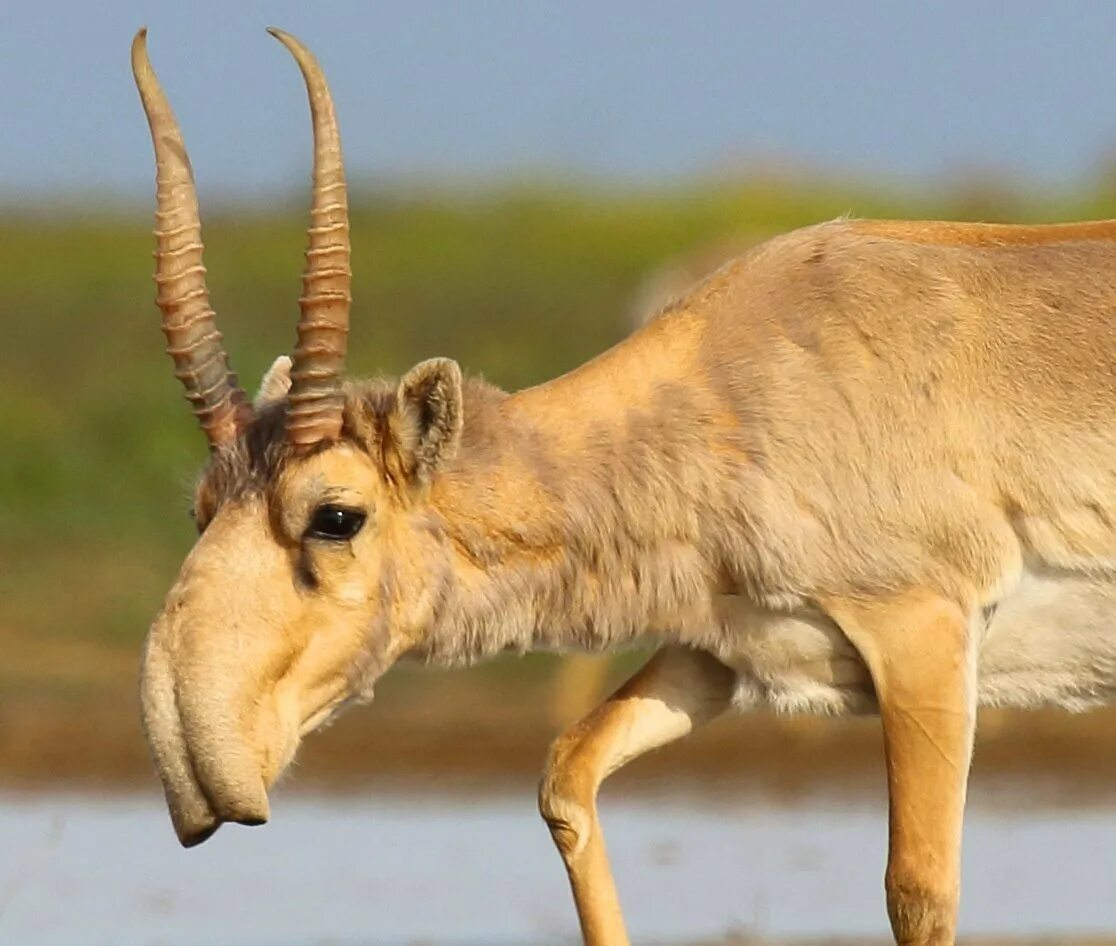 Главная особенность сайги — её нос-хобот. Эта природная "маска" выполняет несколько функций:Летом защищает лёгкие от пыли, что особенно важно во время миграций через пыльные степи.