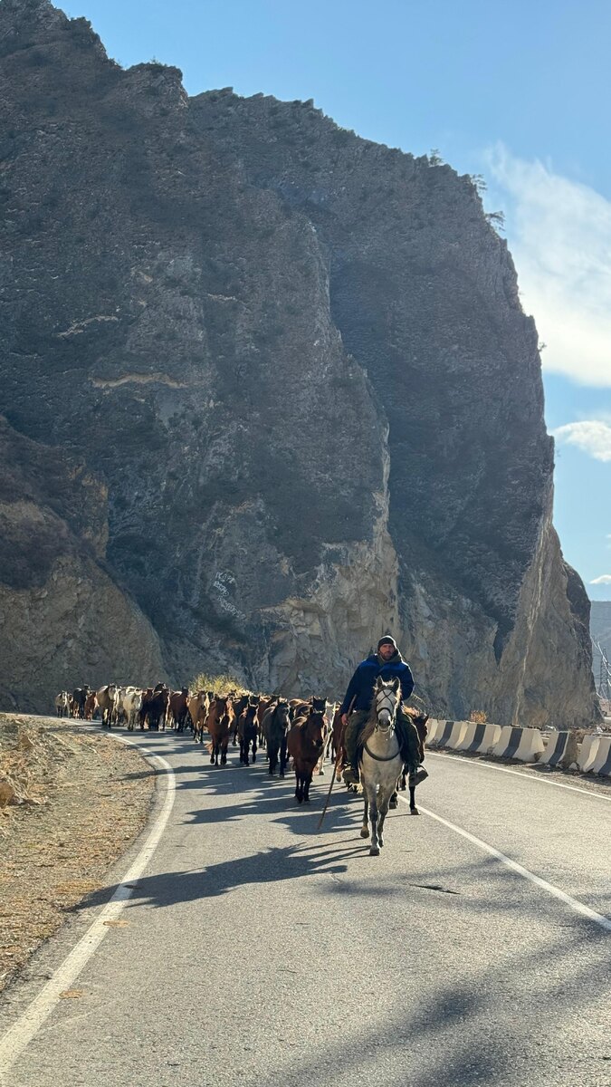Мероприятие сезонное и за несколько суток пути фермерам надо перегнать табун на низменность, на зимовку. Своим ходом, через горные реки, леса, песчаные дюны. Погода в это время года переменчива, а в горах порой непредсказуема. Дождь может смениться снегом, яркое солнце днем, ночными заморозками. Но чабанам жаловаться на погоду некогда. Работа тяжелая, требующая постоянного внимания, а порой и опасная. Переходить бурную реку некоторым жеребцам не под силу. Молодняк может не устоять. Вторая опасность — камнепады. Третья — попасть в снежный буран. Одно из самых крупных хозяйств в Дагестане в пути пятые сутки. Более трехсот скакунов уже прошли пять крупных района республики. До бархана Сарыкум осталось несколько километров, за ним уже равнина. Сопровождают лошадей три табунщика, ветеринар на автомобиле и несколько специально обученных собак. Всего в места зимнего размещения, каждый сезон прибывает порядка двух тысяч лошадей. Все маршруты скотоперегонных трасс закреплены за работниками Респ