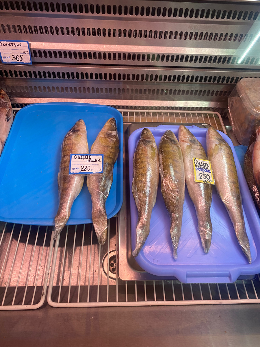 А у них есть такой местный рыбный магазин, где продаётся свежая наша речная рыба.