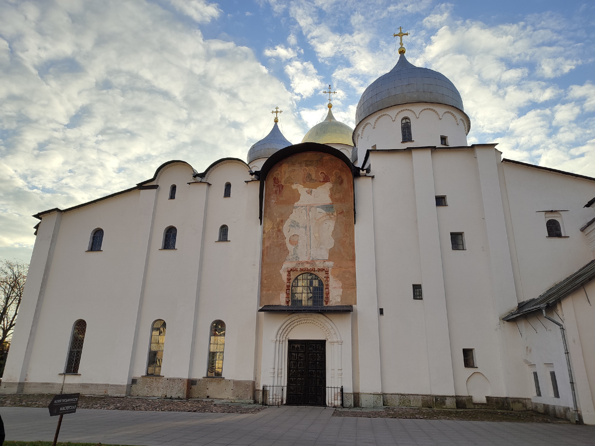 Так много интересного можно посмотреть в Новгороде и так много фотографий было сделано, что решила написать отдельную статью еще про одну достопримечательность, с которой связано много разных легенд. Сегодня я вам хочу рассказать про старейший храм в России — Софийский собор. Белоснежный храм в византийском стиле построили в 1050 году. От фресок XII века осталось несколько фрагментов, а на трёх иконостасах размещены иконы XIV–XVII веков. В Софийский собор ведут три входа, но везде можно узнать подробности только про два. Возможно, третий — служебный. Если вы точно знаете про третий вход, то напишите об этом в комментариях. Все посетители могут попасть в храм через северные двери, но главным считается западный вход. Его открывают только во время торжественных богослужений, когда службу возглавляет митрополит Новгородский и Старорусский. Западный вход украшают Магдебургские врата — работа немецких литейщиков XII века. Есть разные версии, как они появились здесь. По одной из них, это был