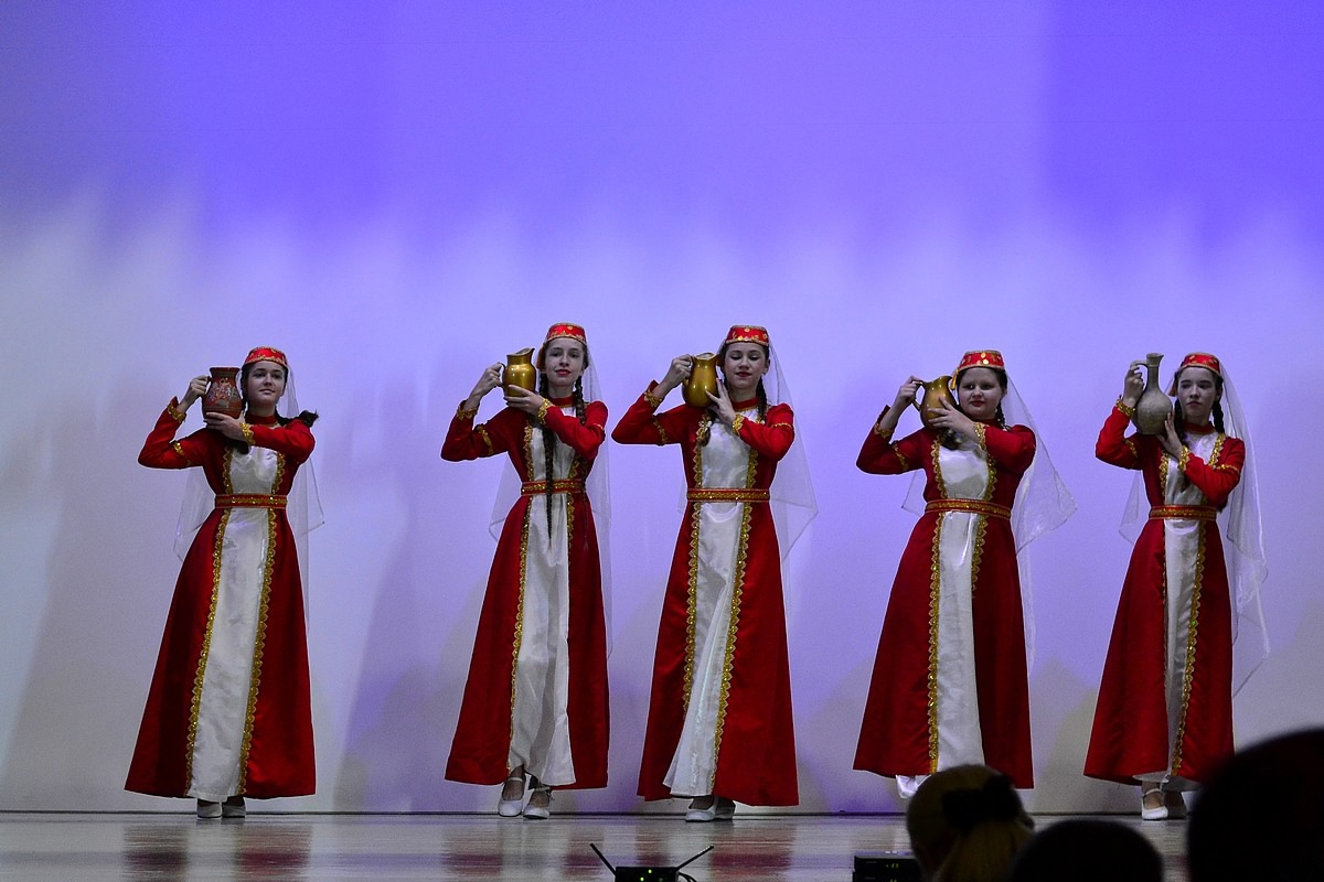 Крымскотатарская культура не является изолированной, поэтому, как и в других культурах, могут происходить заимствования у соседей. В некоторых танцах выше вы могли увидеть кавказские мотивы, и в одном даже что-то цыганское. А вот в следующем танце можно увидеть славянский мотив, ну, по крайней мере, есть элементы, которые можно увидеть в русских национальных танцах. Но яркий голубой цвет - это признанный в культуре крымскотатарский цвет.