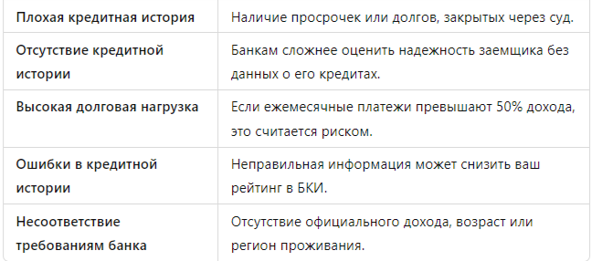Отказ в кредите — неприятная ситуация, особенно если деньги нужны срочно. Причины могут быть разными, но основные из них связаны с состоянием кредитной истории, уровнем дохода и нарушением банковских требований. Перед подачей заявки на кредит важно провести анализ своей финансовой ситуации и кредитной истории. Банки охотнее выдают кредиты под залог имущества (например, недвижимости или автомобиля) или с поручителем. Если кредитная история испорчена, стоит сосредоточиться на её улучшении: Юристы помогут: ⚠️ Важно! Обращение к профессионалам может существенно ускорить процесс исправления кредитной истории. В России есть банки, готовые работать с клиентами с плохой кредитной историей. По данным НАФИ (Национального агентства финансовых исследований): Если банки отказывают в кредите, это не приговор. Главное — выявить причину отказа, исправить кредитную историю и обратиться в подходящий банк. Не тратьте время на догадки! Получите бесплатную консультацию юриста по ссылке.