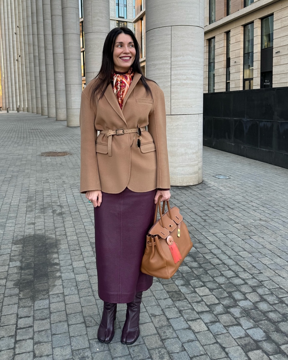 Юбка длины миди – классика на все времена! Выбирайте модели из плотного материала, например, из трикотажа, кожи, твида.