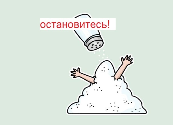 Соль - враг здоровья. Пройдите элементарный тест на употребление соли. Многие, когда им задают вопрос : «Вы злоупотребляете солью при ежедневном рационе?», отвечают абсолютно искренне, что они придерживаются рекомендаций ВОЗ о снижении потребления соли до 5 грамм в сутки. Но так ли это на самом деле? Узнать ответ на этот вопрос элементарно. Вот несколько простых вопросов. 1) Досаливаете ли вы блюда при употреблении непосредственно на столе? Да\нет 2) Бывают ли у вас отеки? Да\нет. 3) Чувствуете ли вы при употреблении продуктов, что они недосолены? Да\нет. 4) Испытываете ли вы постоянное желание пить? Да\нет. 5) Повышенное давление - ваш частый спутник? Да\нет. Если вы ответили на большинство вопросов положительно, то с большой долей вероятности в вашем меню есть избыток соли. Даже если не солить продукты вообще, то очень высокое содержание соли есть в приготовленных продуктах. А если в вашем рационе есть готовые блюда фастфуда с наличием соусов, то норматив превышается однозначно. Мн
