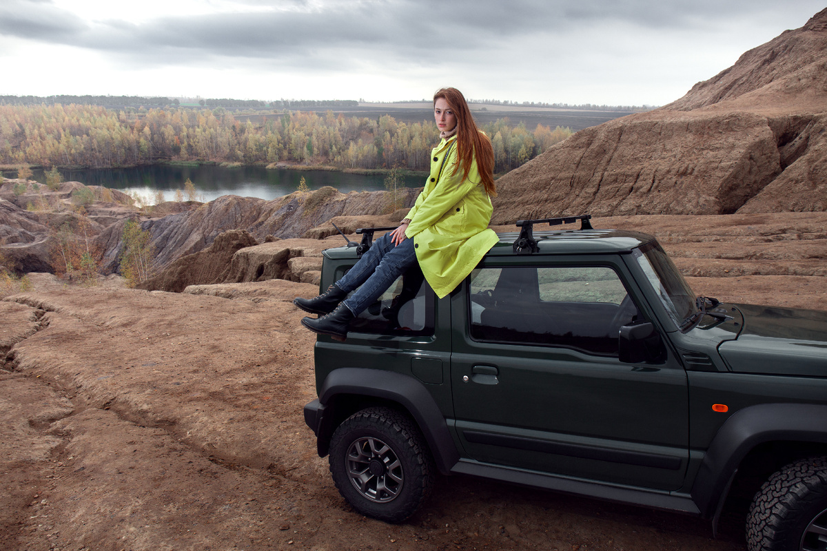 Как-то написал мне мой друг Вано и сказал, что будет у него на тесте Suzuki Jimny. Я подумал, что это отличная возможность поснимать то, что давно у меня зрело в голове: авто + модель = лайфстайл. Модель я тоже нашел уже давно, больше года назад познакомился на одной съемке с Элиной. Еще я хотел сделать коллаборацию с фотографом, который снимает людей больше, чем я. Позвал Дениса, которого я понимаю с полуслова, а он меня. И вот вроде все хорошо складывалось, но потом… Потом Вано сказал, что Сузуки дают нам тачку не ярко-зеленого цвета (как я попросил), а просто зеленого. Мне пришлось придумывать другую одежду, благо на тот момент еще не успел купить ее. Далее. Я выбрал место съемки – Кондуки, это под Тулой, 1.5-2 часа езды от Москвы. Я там не был ни разу и не знал точно, сможем мы туда заехать на машине или нет. Но я не делал на этом особо акцент, чтобы не вносить дополнительные волнения для участников поездки. Видел в Интернете, что люди как-то проезжают, а значит, и мы проедем, у на