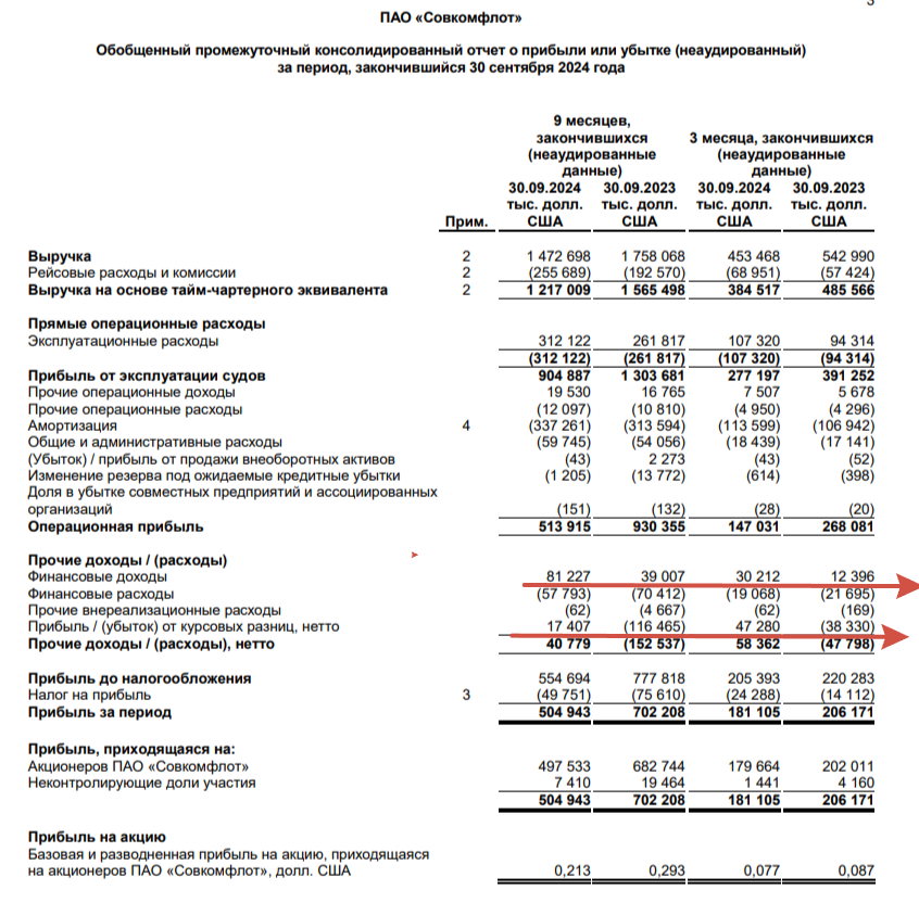 Совкомфлот отчитался за IIIкв. 2024г. — фин. показатели ожидаемо ухудшились. Надежда на ослабление рубля, кубышку и взлёт ставок на фрахт