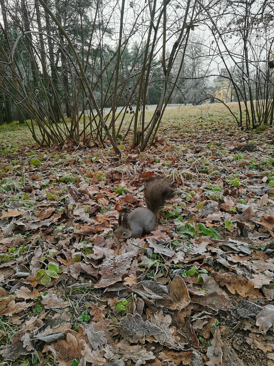 Исходив все известные беличьи места, мы уже было отчаялись. Но на наше счастье одна единственная белочка решила снизойти до нас и со всем великодушием забрать у нас грецкие орехи.