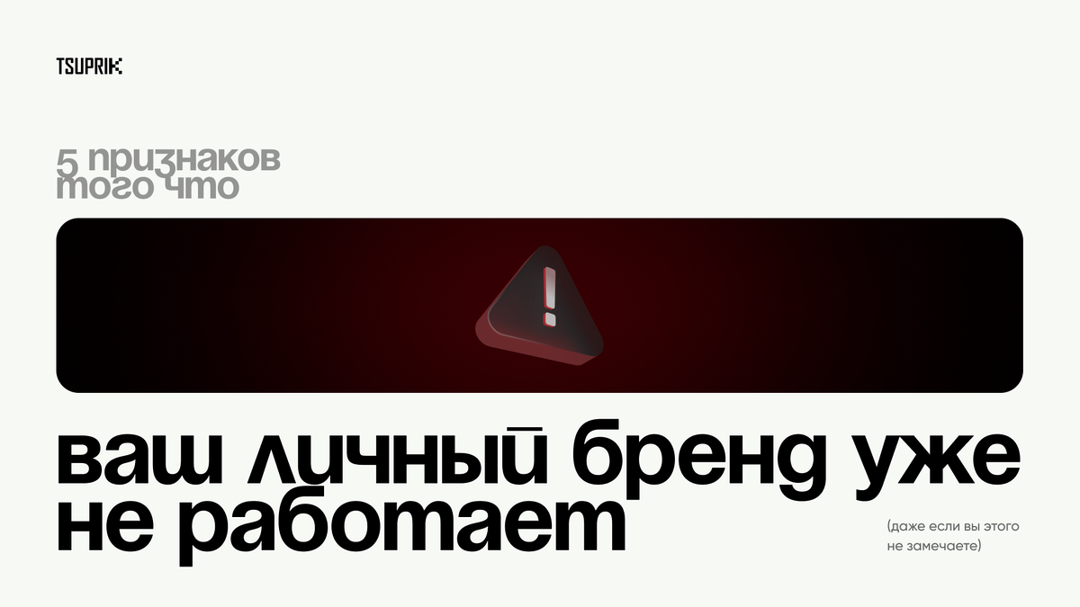 Всем привет! Меня зовут Данил, я основатель TSUPRIK.CLUB - первого акселератора в России по капитализации имени. Вы успешный предприниматель, ваш бизнес приносит прибыль, и кажется, что всё идёт как надо. Но внезапно вы замечаете: переговоры стали проходить сложнее, старые клиенты теряют интерес, а в соцсетях отклик от аудитории резко упал. Знакомо? Возможно, ваш личный бренд больше не работает так, как вы думаете. Личный бренд — это не статичная визитная карточка, а живой механизм, который требует постоянного обновления. Если упустить момент, он перестаёт приносить результаты, а вы это можете даже не заметить. Вот 5 ключевых признаков, что ваш бренд устарел или перестал быть эффективным: 1. Ваш бренд больше не выделяется.