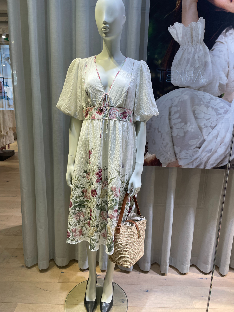 чудесное, воздушное платье цвета топлёного молока, украшенное нежным принтом.