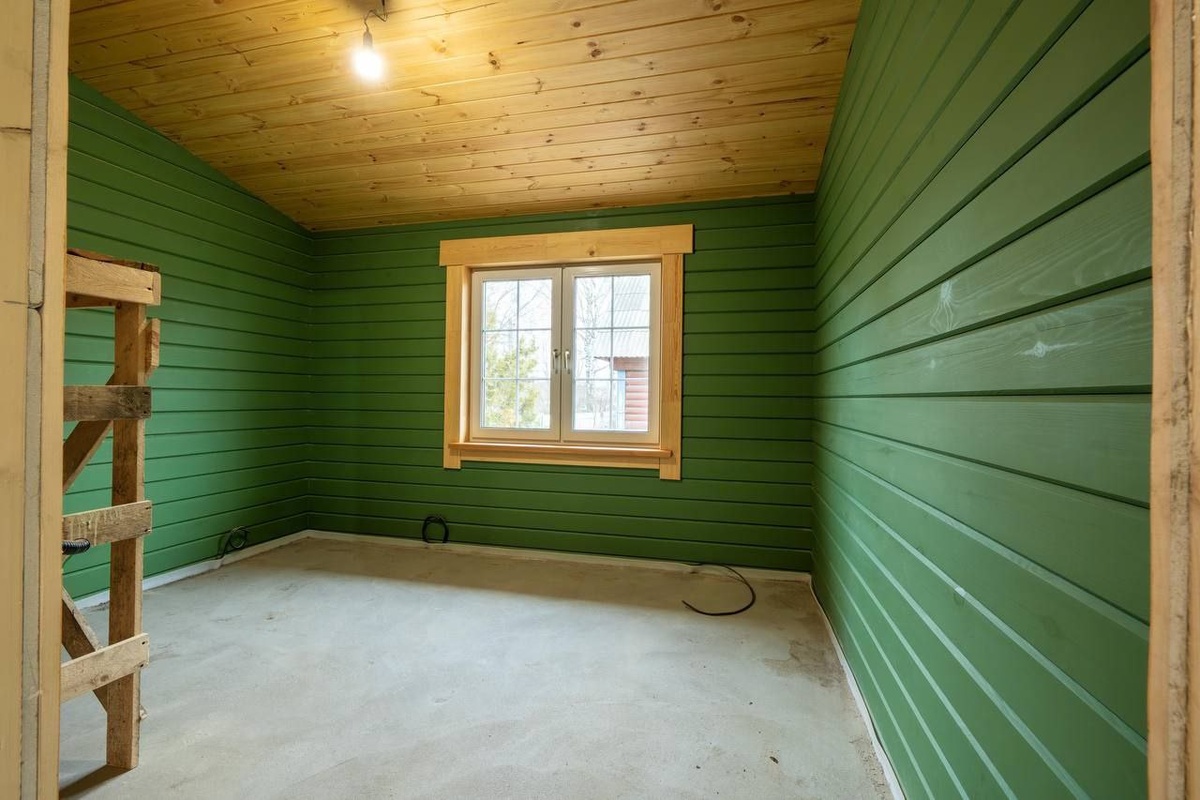 Дом из бруса по проекту «Маргарита» в деревне Русавкино-Романово городского округа Балашиха мы начали строить в октябре прошлого года. Возвели сруб и сразу же приступили к отделочным работам, которыми занимались всю зиму: развели инженерные коммуникации, утеплили пол и крышу, залили стяжку, отшлифовали и покрасили стены и потолок. Интерьер в доме выполнен в кантри-стиле. Три стены в спальнях выкрашены в сочный зелёный цвет, а потолок — в одном цвете с четвёртой стеной. Имитацию бруса на каркасных стенах подшили вертикально. Выглядит необычно и визуально делает выше потолки. Мне эта раскладка очень нравится, поэтому в своём доме я сделал так же. На этом объекте мы сейчас занимаемся плиточными работами: укладываем плитку на пол и отделываем санузел. Также бригада Евгения Жидкова на днях приступила к фасадным работам. В общем, уже этим летом будем ждать от заказчиков фотографии, как они наслаждаются отдыхом в своём загородном доме 💚