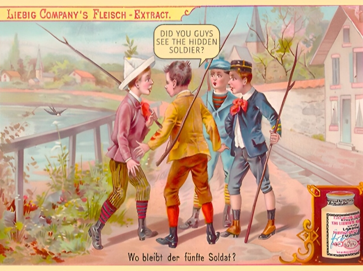 В наше время, когда внимание постоянно рассеивается между десятками вкладок и уведомлений, способность концентрироваться становится настоящим суперсилой. Вы замечали, как сложно бывает сосредоточиться на чем-то одном? Наш мозг, перегруженный информацией, учится «скользить по поверхности», пропуская важные детали. Ученые выяснили, что среднестатистический человек за день получает больше информации, чем житель XVIII века – за целый год! Неудивительно, что нам всё труднее замечать нюансы. Но есть хорошая новость: наблюдательность можно тренировать, как мышцу. И лучший тренажёр для этого – старинные оптические иллюзии, которые заставят ваш мозг работать в полную силу. Три исторических головоломки на внимательность: 1. «Пропавший разведчик» Перед вами сценка из XIX века: четверо мальчишек в кепках и подтяжках собрались поиграть в войнушку. Но игра никак не начинается – не хватает пятого участника. Он должен быть здесь... Но его нигде не видно... Задача: Найдите хитреца, который мастерски за