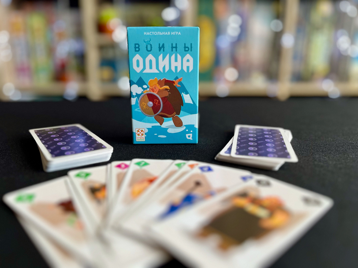 Я постоянно с вами делюсь своими карточными фаворитами, особенно, когда дело касается игр–малюток. Партия длится всего 10 минут, а ты входишь в такой азарт, что на одной остановиться не можешь. Постепенно начинаешь видеть разнообразные трюки и совершать многоходовочки, читаешь мысли соперника и предугадываешь его ходы, и от этого получаешь невероятное удовольствие. Не один раз я знакомилась с викингами, отправляющимися в Вальхаллу, и вот они вновь меня зовут вместе с «Воинами Одина». Ваша цель – первым избавиться от карт на руке. Если у игрока заканчиваются карты, все остальные отнимают из своей первоначальной суммы (15) число, равное количеству карт, оставшихся на руке. Как только один из участников дойдёт до нуля, определяется победитель с наибольшим числом оставшихся очков. В первый ход участник разыгрывает с руки все одну карту любой масти и номинала, от 1 до 9. У второго игрока больше вариантов, он может побить эту карту такой же одиночной, но большего значения, масть при этом не