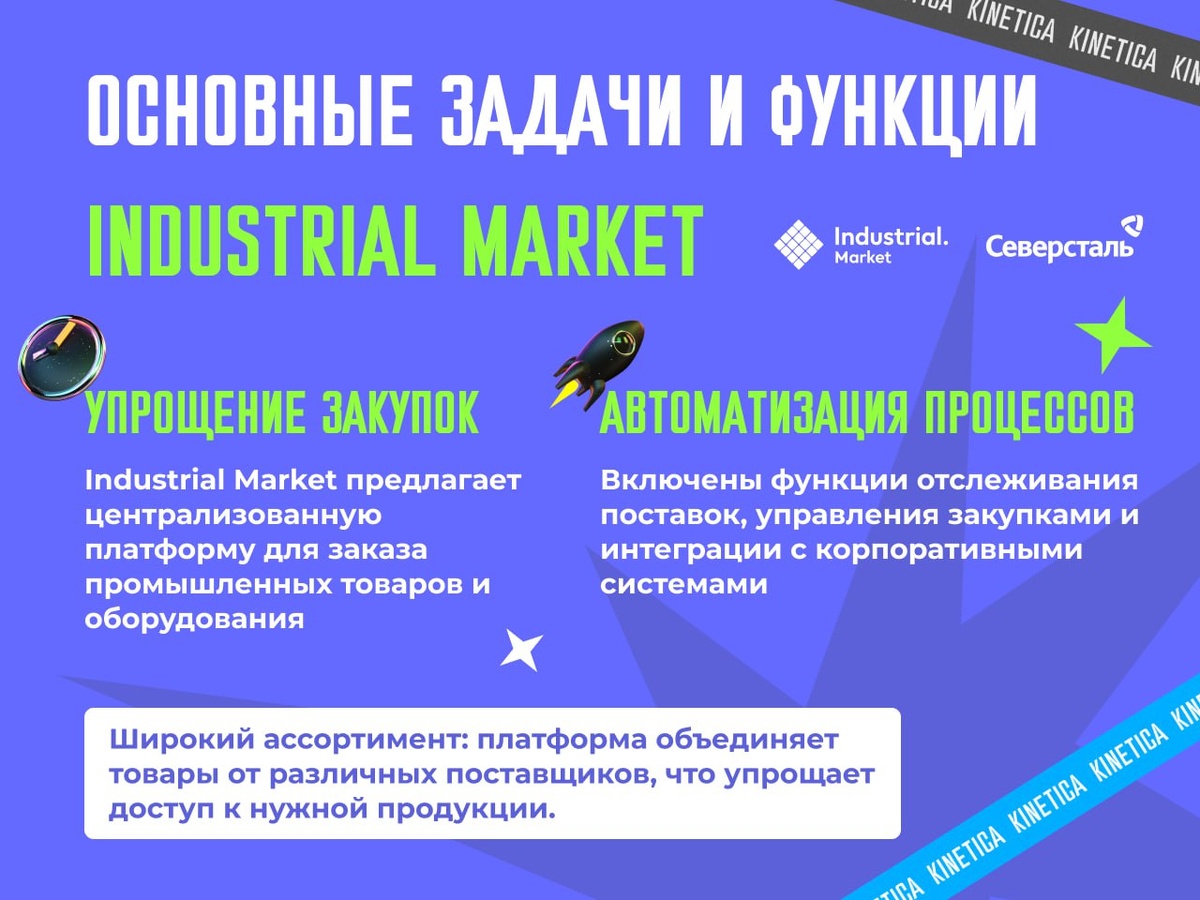 KINETICA продвигает ecom-проект «Северстали» — B2B-маркетплейс Industrial.Market. Читайте, как грамотное применение перформанс-каналов помогло гиганту металлургической отрасли захватить значительную долю рынка закупок стандартизированных товаров, годовой объём которого в России оценивается в 20 млрд $.