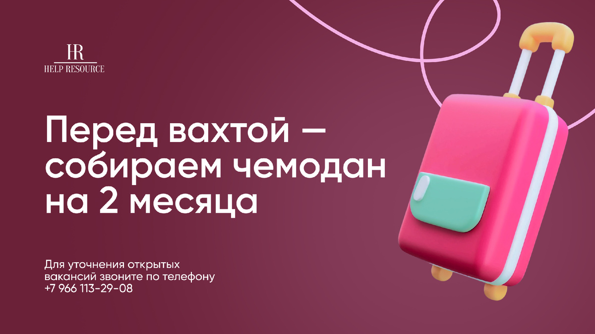 Готовитесь к вахте на 2 месяца и хотите собрать чемодан максимально правильно? В нашей статье мы делимся проверенными советами, что взять с собой и как не забыть важные вещи. Если у вас остались вопросы или нужна индивидуальная консультация — компания Help Resource готова помочь с этим по номеру: 8 (966) 113-29-08! Ваша подготовка — наш приоритет!