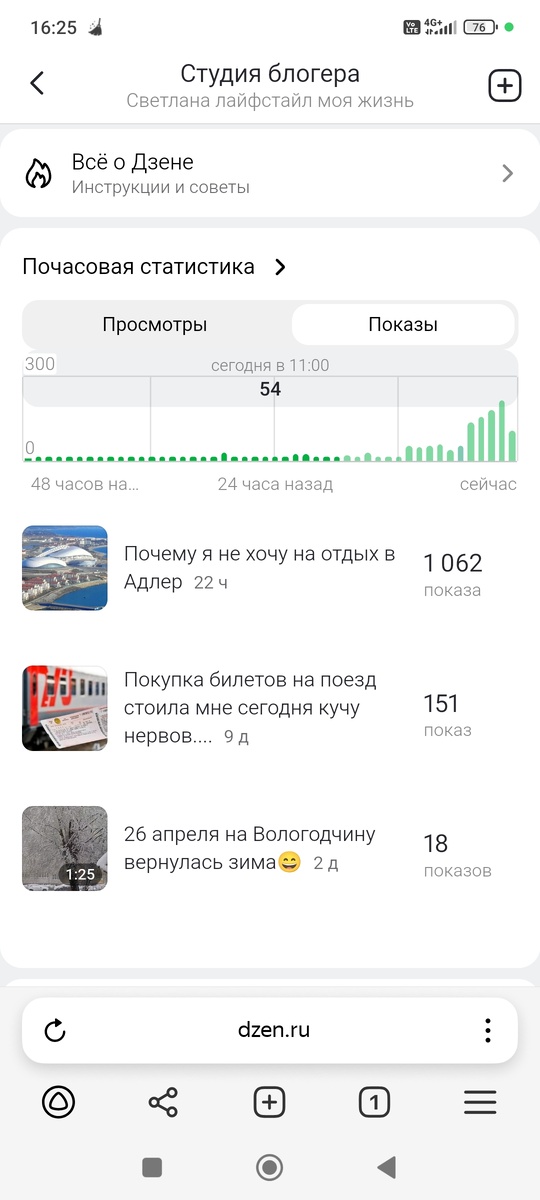 Здравствуйте, дорогие подписчики и гости канала! Решила я сегодня посмотреть статистику, так как канал мой , можно сказать топчется на месте. Кто-то подписывается, кто-то отписывается... Колличество подписчиков остается примерно одинаковое и так несколько месяцев. Я понимаю, что плохо развиваю канал. Для развития необходимо писать , как минимум статью в день, а еще лучше-две. А я могу и неделю и десять дней ничего не писать, бывает настроения нет что-то писать, бывает , многим хочется поделится, в итоге передумаю и вообще ничего не пишу. Так как канал у меня чисто , как хобби, то я особо с его развитием и не заморачивалась. А сегодня посмотрела статистику и что-то меня напрягло это топтание на месте. Я думаю, у меня мало интересных , вовлекающих статей. Больше всего просмотров и показов за последнее время набрала статья о покупке жд билетов. За дней 10 дней эта статья набрала 1213 дочитываний ( 14часов) и 5585 показов. Так же хорошо зашла вчерашняя статья про Адлер. У нее 1310 пок