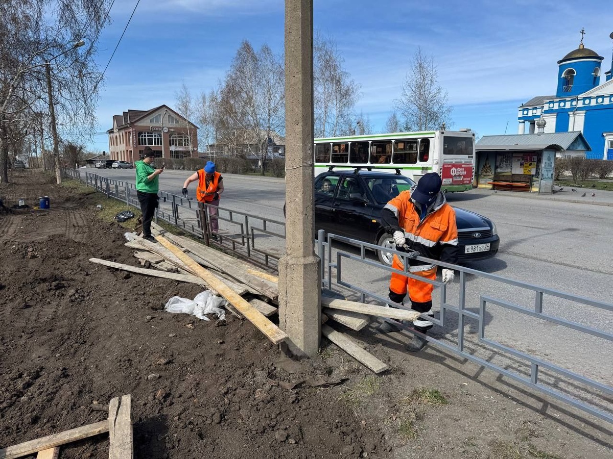 Сотрудники САТП в Ачинске как всегда по-Титенковски красят мятый и гнутый забор вдоль будущего историко-культурного парка, реализацию