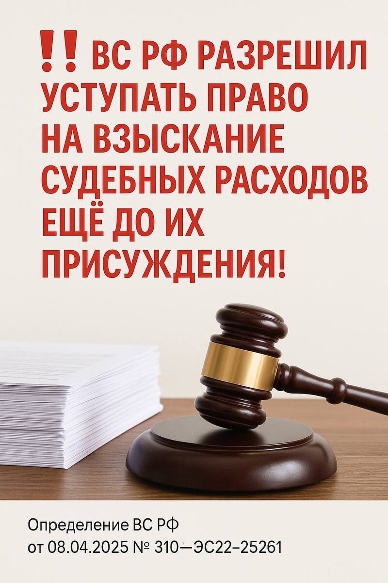 ‼️ ВС РФ разрешил уступать право на взыскание судебных расходов ещё до их присуждения