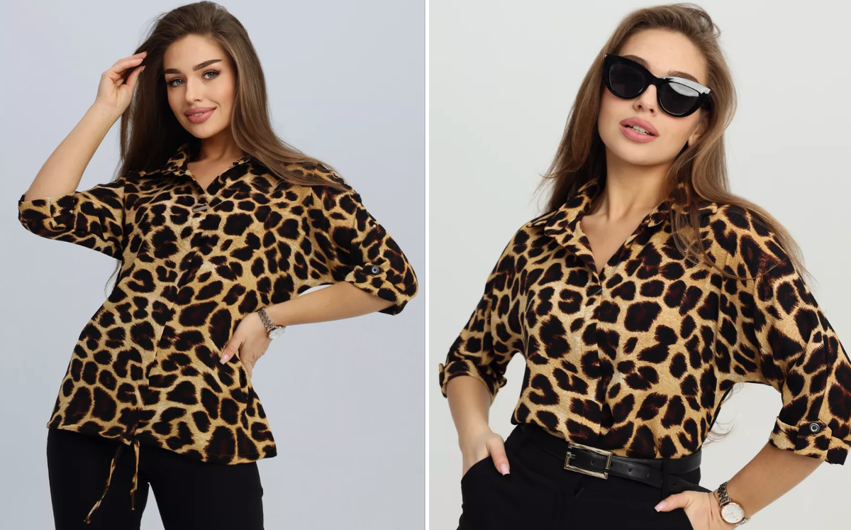 Очень эффектная блузка для яркого образа. Леопардовый принт смотрится стильно и современно. Материал приятный к телу, мягкий и лёгкий. В составе есть вискоза и шёлк, благодаря чему ткань дышит и красиво струится.