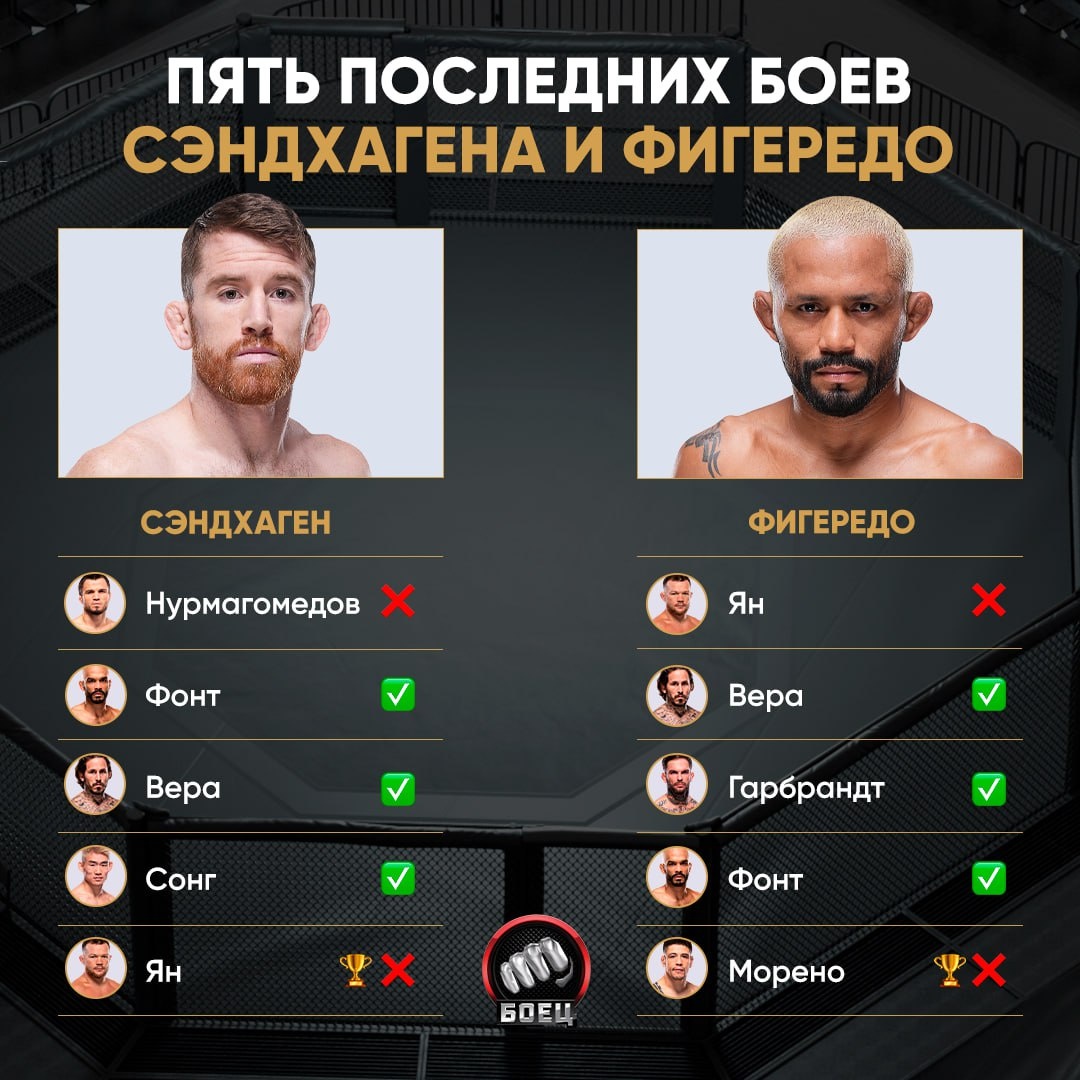 На этой неделе турнир UFC возглавят Сэндхаген и Фигередо ⚔️