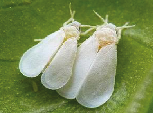 Это мелкая белая мошка, похожая на крошечную моль. Она откладывает яйца на внутренней стороне листьев, а её личинки высасывают сок из растений. Листья желтеют, вянут, и всё растение начинает чахнуть. Кроме того, белокрылка переносит всякие вирусные болезни. Так что шутить с ней не стоит.