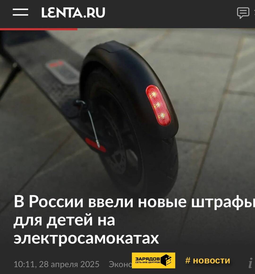 С сегодняшнего дня штраф за управление электросамокатами детьми и подростками подняли до 100 ТЫСЯЧ рублей в Москве. Для других регионов штрафы повысили до ₽30 тысяч. В зависимости от оператора минимальный возраст для управления самокатом — 16-18 лет. Следующим шагом сервисы предлагают ввести верификацию пользователей через Госуслуги.