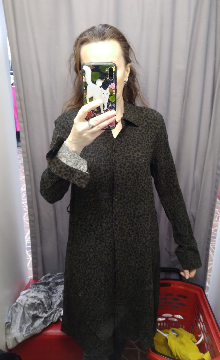 Здравствуйте, продолжу обзор из секонда, все можно было купить со скидкой 80%. Сегодня будет много фоток и мало слов. Платье как мужская сорочка переросток). Очень удобная модель, особенно если не расстегивать все эти мелкие и масепусельные пуговички)) и приспособиться влетать в полурастегнутое платье. Vila — датский бренд женской одежды, который входит в группу компаний Bestseller. 100% вискоза. Хаки с чёрными пятнами, цвет более яркий, пятна заметно выделяются на фоне. Жёлтое платье с ассиметричным подолом, середина более длинная. Веселенькое жёлтое платье на девочку и не только, на мелких взрослых тоже подойдет)). Без состава. Платье - оранжевая фантазия. Сшито очень простенько, зато платье украшено такой заметной тесьмой. Сначала решила, что она такая широкая, но оказывается, что три тесьмы собрали в один узор. Бренд Elsa M by May — французский. Состав не нашла, но похоже на синтетику. Взяла себе серую плюшевую футболку за 100 рублей. У меня мало однотонных вещей, пусть будет,