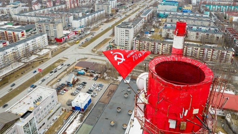 В центре Сургута установили копию Знамени Победы В преддверии Дня Победы в городе появилась копия штурмового флага 150-й ордена Кутузова II степени Идрицкой стрелковой дивизии. «СГЭС» разместили ее на дымовой трубе Пиковой котельной в центре города. «Мы хотим, чтобы символ Победы был не только был виден каждому жителю Сургута, но и олицетворял связь поколений, напоминал какой ценой была достигнута свобода и независимость нашей Родины», - отметил руководитель компании Виталий Пак. В ночь на 1 мая энергетики планируют включить подсветку Знамени в честь подвига бойцов Михаила Егорова и Мелитона Кантарии. 📷: пресс-служба СГЭС Подписаться | Прислать новость | Дать «буст»