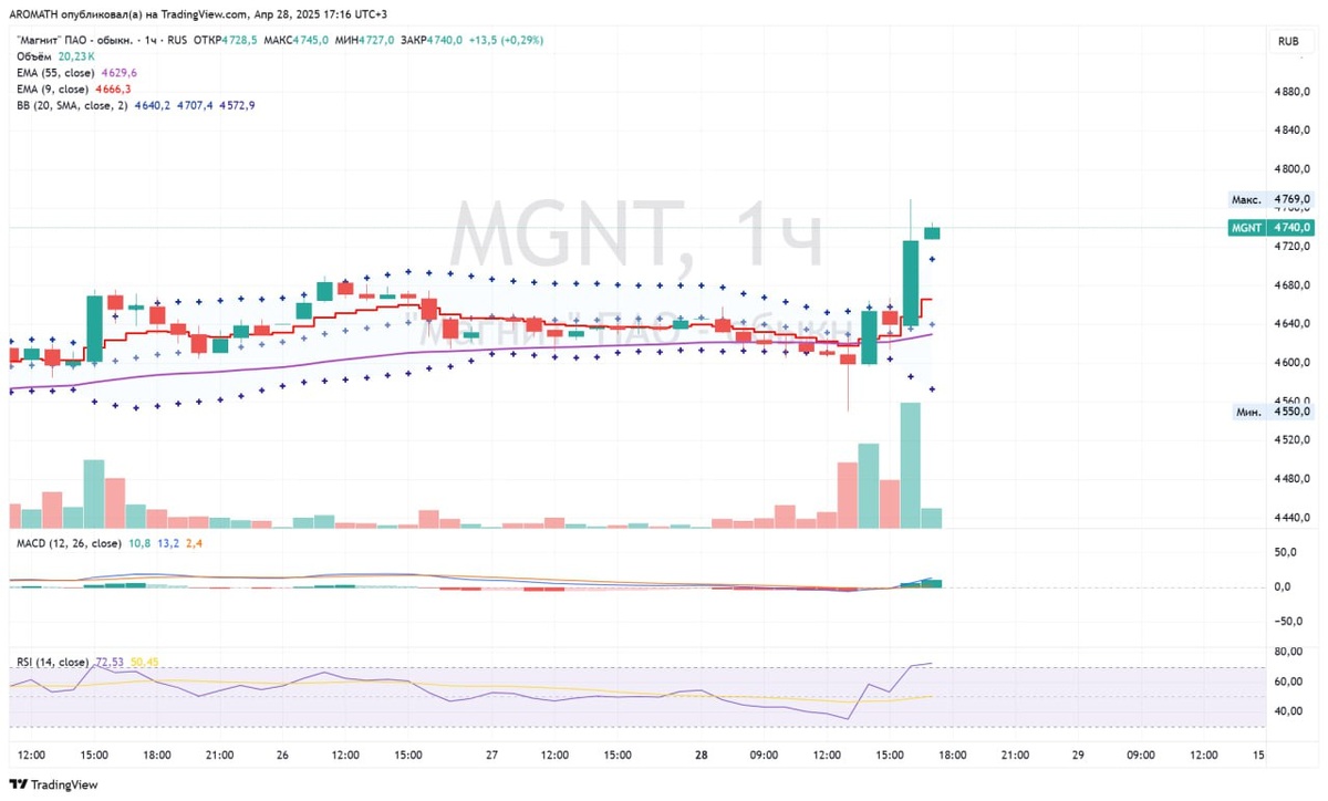 #GAZP #MGNT - Нацдостояние и Магнит имеют одинаковые часовые графики сегодня