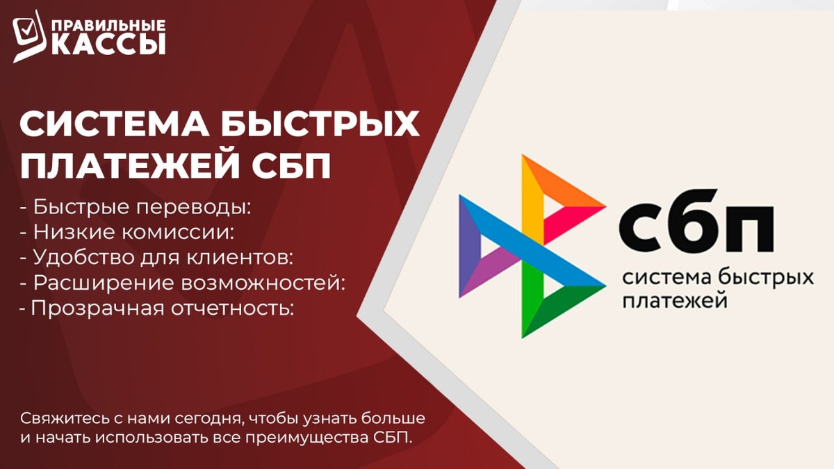 Система быстрых платежей (СБП) Подключив СБП, вы получаете ряд преимуществ: ☑️Быстрые переводы: Ускоряют обработку заказов и увеличивается оборот. ☑️Низкие комиссии: СБП предлагает более низкие тарифы, что экономит ваши средства. ☑️Удобство для клиентов: Клиенты могут оплачивать товары и услуги, используя только номер телефона -повышается лояльность и увеличиваются продажи. ☑️Расширение возможностей: С помощью СБП вы можете принимать платежи и осуществлять возврат средств, а также использовать QR-коды для оплаты. ☑️Прозрачная отчетность: Вы получаете полную информацию о всех платежах, что упрощает бухгалтерский учет. Свяжитесь с нами сегодня, чтобы узнать больше и начать использовать все преимущества СБП!