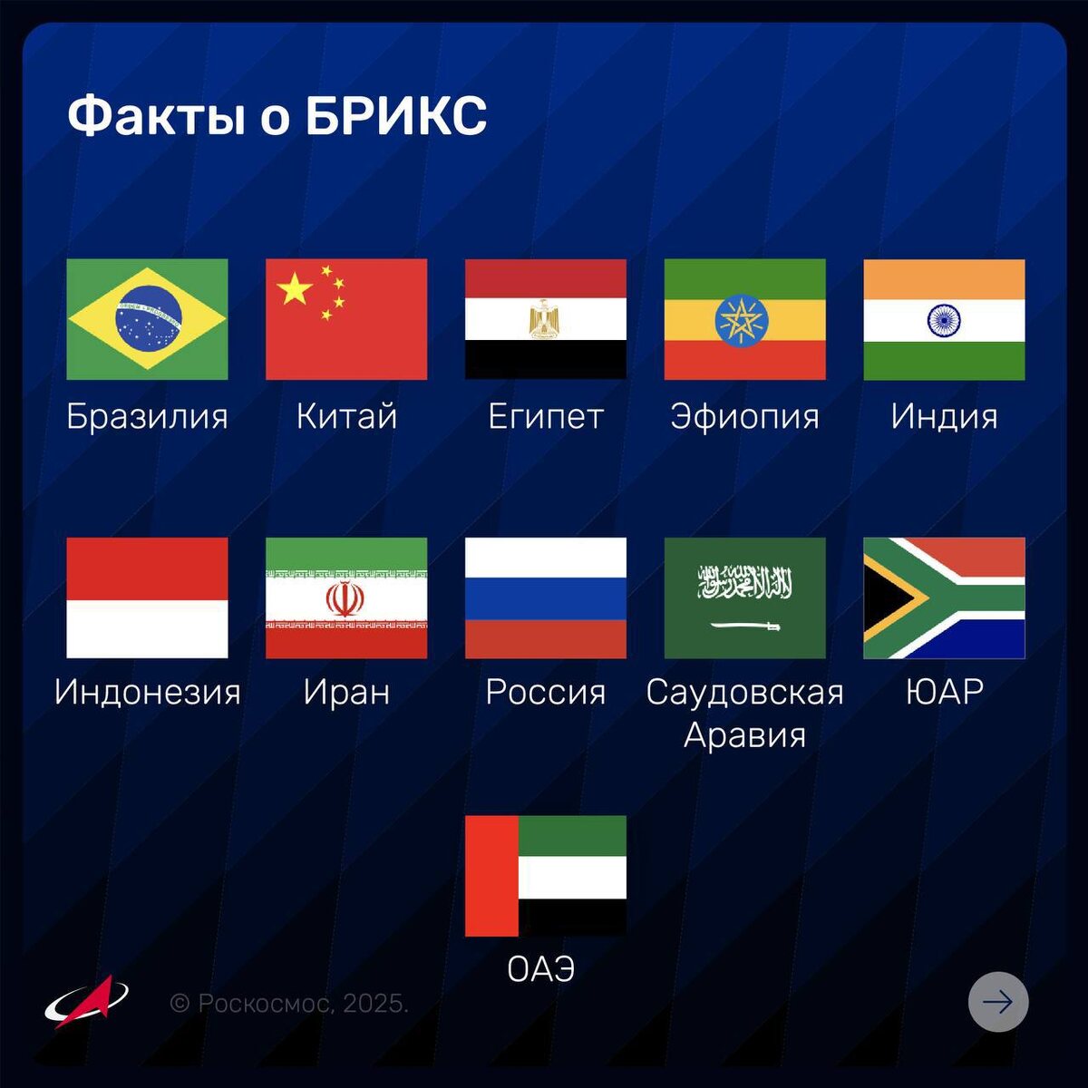Космос в БРИКС 🚀Тем временем в Бразилии проходит ежегодная встреча Глав космических агентств БРИКС. 📃 Роскосмос подготовил для нас интересную инфографику о космической инфраструктуре участниц объединения и успехах, достигнутых в космической отрасли. Делимся и вместе с вами продолжаем следить за ходом встречи. #КосмическийПроект
