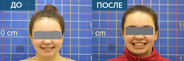 На первичной консультации ортодонт объяснила, что кривые зубы свидетельствуют о недоразвитии челюстей и начинать работу по исправлению прикуса у подростка следует именно с развития челюстей и, таким образом, создания места для зубов. Необходимо простимулировать рост верхней челюсти, чтобы для неровно растущего зуба стало достаточно места в зубном ряду. Пациентка находится в том возрасте, когда еще продолжается рост скелета, и воздействие на челюсти дает положительный и стабильный эффект. В данном случае было выявлено недоразвитие верхней челюсти в переднем отделе. Именно из-за этого правый верхний клык не уместился и стоит вне зубного ряда. Нижняя челюсть, будучи подвижной, всегда подстраивается под верхнюю. Поэтому при изменении размера верхней челюсти мы предполагаем увидеть и новую позицию нижней. Мы поможем нижней челюсти занять более физиологичное положение в черепе и всей постуре. Сделаем мы это при помощи работы остеопата и нейромышечного стоматолога. Вместе сними мы выработаем совместный план лечения, чтобы изменение прикуса не усугубило функциональную проблему, а наоборот помогло ее устранить и благотворно повлияло в дальнейшем на здоровье ВНЧС, шею, дыхательные пути. Так как по осанке и положению головы пациентки было выявлено, что нижняя челюсть занимает на период «До лечения» неудобное, нефизиологичное положение. По-другому при недоразвитой верхней челюсти и не бывает.