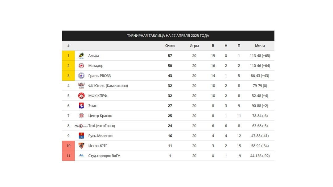 ΠΡΠΎΠ³ΠΎΠ²Π°Ρ ΡΡΡΠ½ΠΈΡΠ½Π°Ρ ΡΠ°Π±Π»ΠΈΡΠ° Π½Π° 27 Π°ΠΏΡΠ΅Π»Ρ 2025 Π³. π₯ ΠΠΎΠ±Π΅Π΄ΠΈΡΠ΅Π»Ρ β ΠΠ»ΡΡΠ°, π₯ ΡΠ΅ΡΠ΅Π±ΡΠΎ β Ρ ΠΠ°ΡΠ°Π΄ΠΎΡΠ°, π₯ Π±ΡΠΎΠ½Π·Π° β Ρ ΠΡΠ°Π½Ρ-PRO33. https://befutsal.ru/league.php?l=224668494