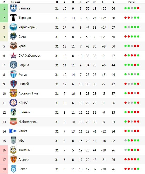 Калининградский клуб проиграл третью встречу в нынешнем сезоне Первой лиги и прервал серию без поражений на отметке в 20 матчей. Последний раз Балтика уступала 16 сентября, когда на выезде програла тому же Торпедо 1:2.