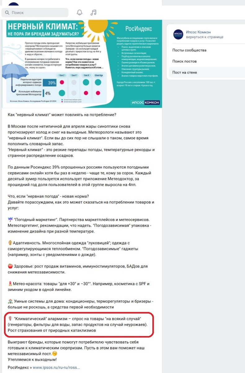 Сижу давеча, листаю ленту ВКонтакте по тегу #esg. И натыкаюсь вот на это (внимание на текст в красной рамке): Сам пост можно посмотреть вот по этой ссылке. На самом деле, мы тут имеем дело с самой настоящей апроприацией энвайронменталистами термина "климатический алармизм". Который на самом деле, означает утверждение глобального потепления как несомненно реального, неизбежного и катастрофического явления. Климатический алармизм заключается в священной вере в то что антропогенные климатические изменения несут в себе исключительно разрушительный потенциал. Собственно, когда из каждого утюга нам кричат что ужасное глобальное потепление надвигается на нас, что это экзистенциальная угроза для всего человечества, что у нас осталось всего пять лет до некой "точки невозврата" и что мы все должны немедленно принять обет добровольно-принудительной бедности, аскетизма во имя Гайи - вот это и есть климатический алармизм. А теперь вот, Ипсос нам рассказывает, что оказывается, климатические аларм