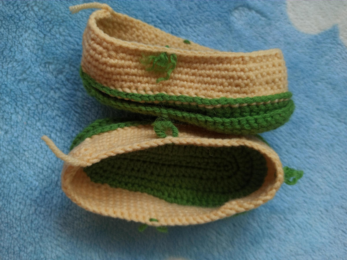 Для верха я выбрала красивую пряжу молочного цвета, полушерсть. Цвета, как мне кажется сочетаются красиво. Следующий этап был сшить 2 подошвы. Потом ряд соединительных вогнутых полустолбиков. И далее 6 рядов столбиков без накида. В 6 ряду спереди убавка 4 петли симметрично. Зелененькими нитками я разметила центр и место, где будет заканчиваться передняя часть . Мне нравится. Ручной труд - творчество успокаивает . Недавно сделала гору блинчиков. Мужу очень понравились, поэтому рецепт: 0,5 л ряженки 3 яйца 3 ст л сахара Ванильный сахар и соль по вкусу Разрыхлитель чуть менее 1 ч л Сода 0,5 ч л Мука 9 ст л Неожиданно удачно. Муки можно чуть больше.