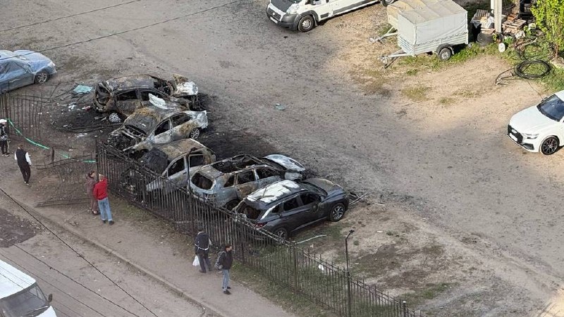 ⚡️Жителям Брянской области показали сожжённые украинскими дронами автомобили. В ночь на 28 апреля, в областном центра загорелись автомобили. 🔺В распоряжении информационного издания РИА «Стрела» появились фотоснимки последствий пожара. 🔺Парковка, где случилось ЧП, находится по улице Красноармейской в Советском районе областного центра. 🔺На фотоснимках видно, что автомобили практически полностью уничтожены. Фото: РИА «Стрела»