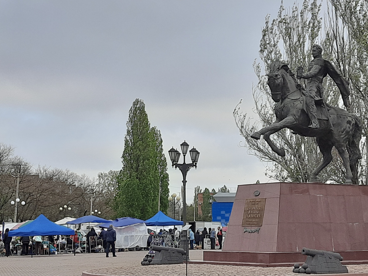 Ярмарка по субботам проводится буквально у нашего дома, а вернее на площади у памятника Воронцову.