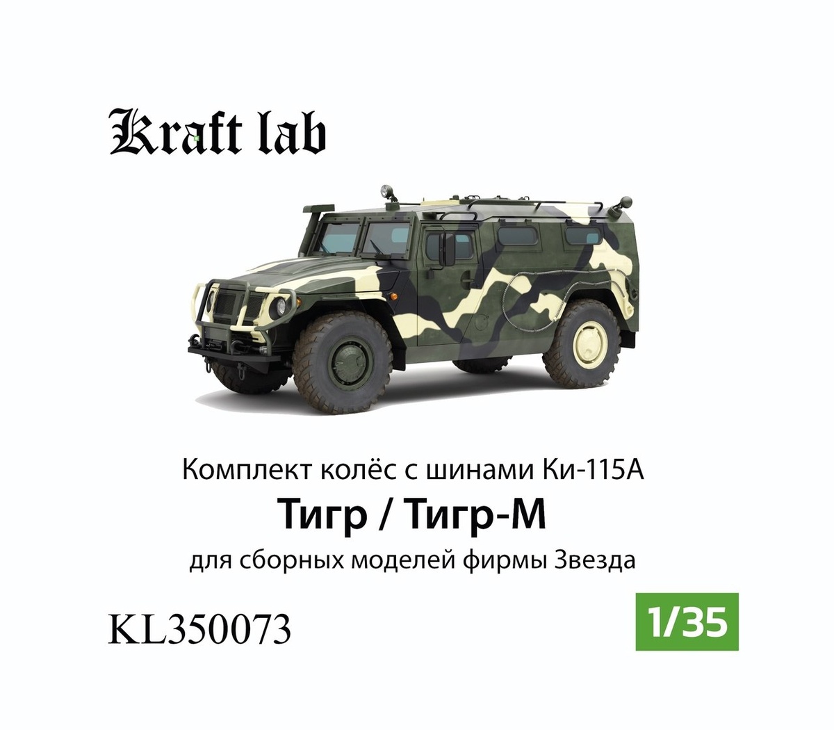 Kraft Lab из Калининграда выпустила на 3D-принтере набор колес с шинами Ки-115А для моделей бронеавтомобилей "Тигр" и "Тигр-М" в масштабе 1/35 от "Звезды".