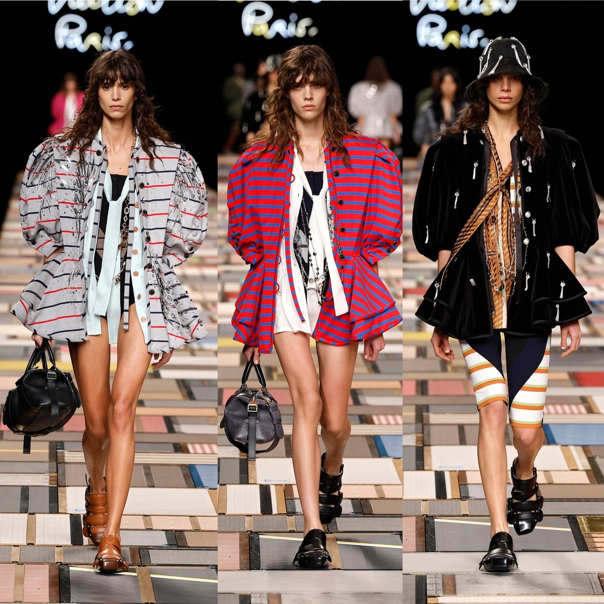 Парижский Лувр вновь стал местом показа данной коллекции. Под величественными сводами Cour Carrée собрались звёзды первой величины, чтобы лицезреть очередную странную коллекцию Николя Жескьера, где сила и мягкость слились в едином танце. Подиум, возведённый из легендарных чемоданов Louis Vuitton, стал символом преемственности традиций, а бархатные стены и зеркальные отражения словно создали портал в мир, где прошлое встречается с будущим. «Мягкая сила» стала не просто слоганом, а философией коллекции, мнение о которой довольно двоякое. В этой коллекции действительно очень много интересных образов, но очень хочется взять и разделить на детали. И пусть она от этого увеличится вдвое, но по крайней мере будет восприниматься более адекватно. В этом сезоне Жескьер сплёл воедино нити разных эпох. Футуристические серебристые украшения резонировали с мотивами в стиле Ренессанс, а именно с пышными рукавами и басками. Источником вдохновения послужил легендарный проект с Ирвингом Пенном, гд