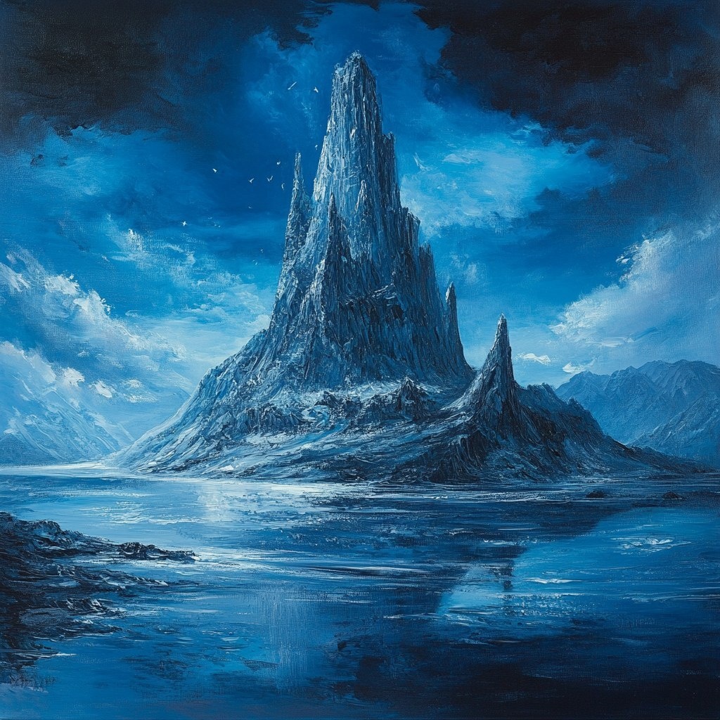 Создано на основе запроса: dungeons and dragons style art bell shaped mountain island made of obsidian glass fantasy style oil painting V7 --- Автоперевод: Подземелья и драконы в стиле арт -колокол в форме горного острова, сделанный из обсидианского стеклянного стиля фэнтезийного стиля. Как тебе такой вариант? 🤔 https://dzen.ru/id/65c0c65c86e4f837c27b24d7 #ИИ #AI #нейросеть #midjourney #art